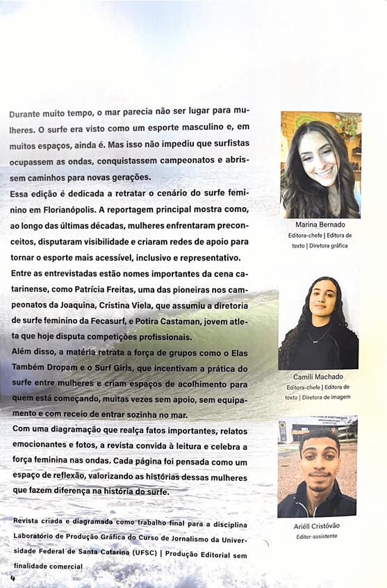 Florianópolis, 07/07/2025 – Trabalho final (revista), produzido para a disciplina: Laboratório de Produção Gráfica, ministrada pelo Prof. Marcelo Silva Barcelos (3ª Fase, Jornalismo-UFSC).